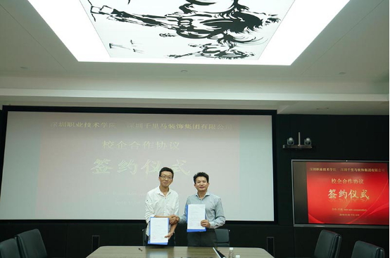 2019年11月8日,深圳千里馬裝飾集團有限公司(簡稱深圳千里馬裝飾集團)與深圳職業(yè)技術(shù)學院(簡稱深職院)校企合作簽約儀式在深圳千里馬裝飾集團總部舉行。